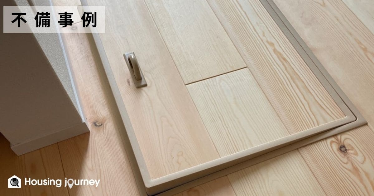 それが、点検口です。開けてみたものの硬くて閉まらない、といった不具合が実はよくあります。床下収納などは開閉チェックするかもしれませんが、点検口は見過ごしがちです。そのまま数年経って点検のタイミングで気づく、なんてこともあります。