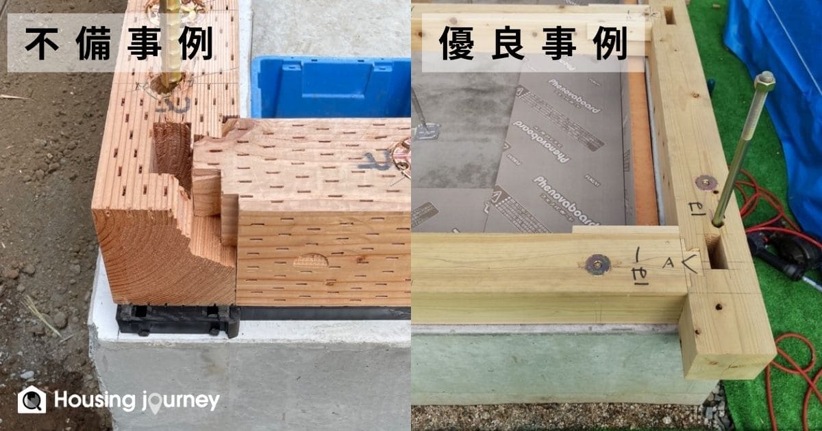 アンカーボルトの留め付け忘れも、現場でよく見られる不備のひとつです。