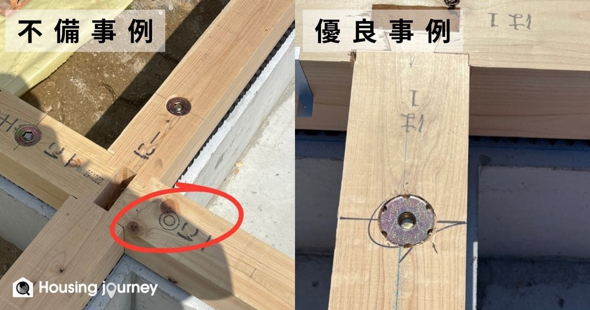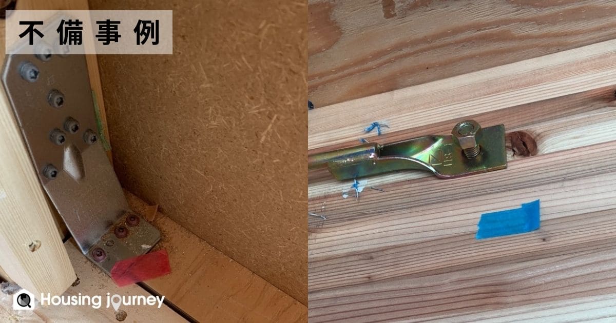 ビスの留め付け忘れや部品の締め忘れは、第三者監査でも多く見受けられます。施主の方がすべてを確認するのは難しい部分なので、現場監督さんに打ち忘れがないか確認してもらうこと、見えにくい上の方は写真でチェックすることをおすすめします。