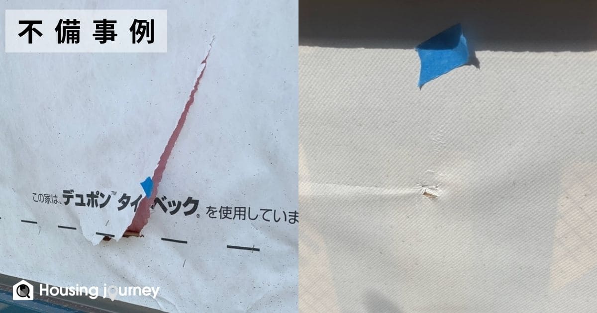 特に、サッシ廻りや配管廻りの破れや隙間は、後から雨漏りの原因になりやすいため、要注意です。