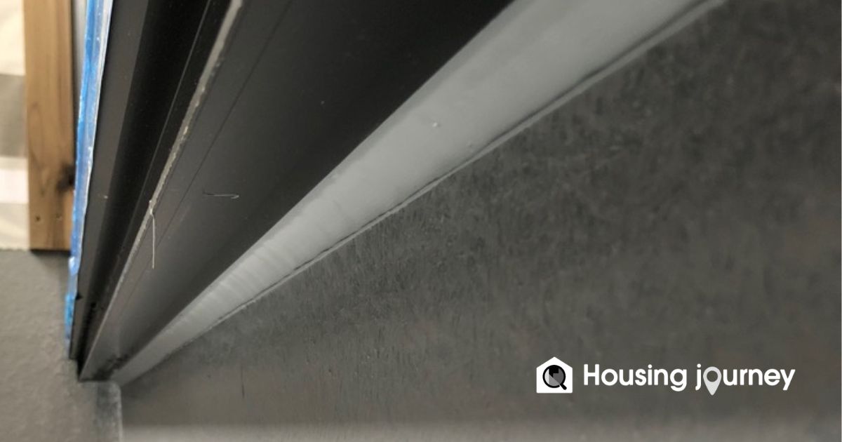 外壁とサッシの隙間を埋めるコーキングの状態を確認します。