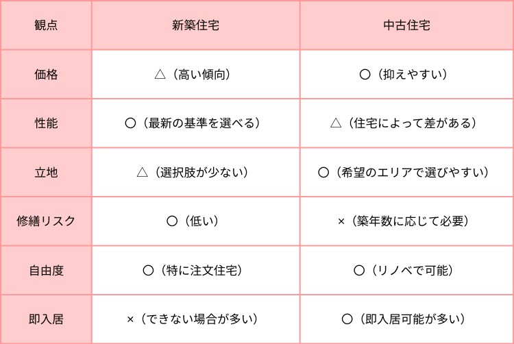 新築にも中古にも、メリットとデメリットがあります。重要なのは、どちらが優れているかではなく、あなたの暮らしにどちらが合うか。