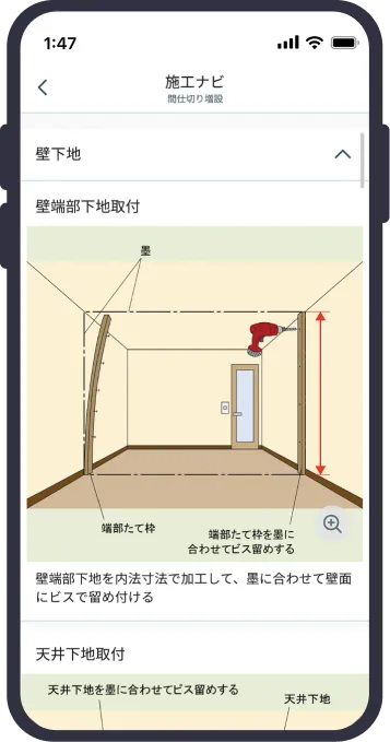 部位毎の正しい施工手順を職人様へ