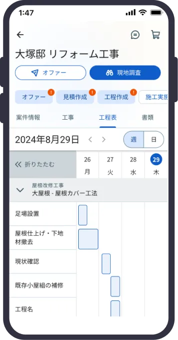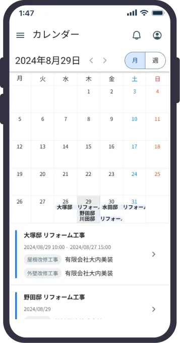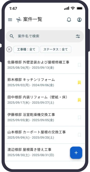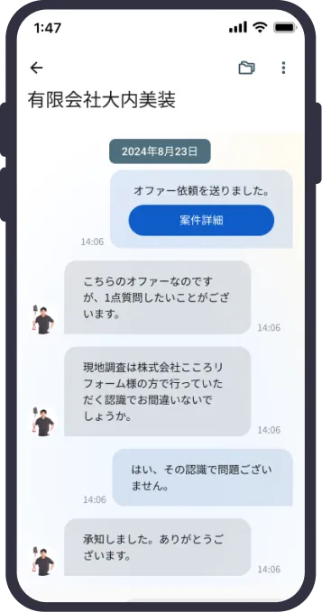 職人だけでなくお施主様との連絡も可能。