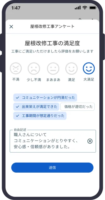 満足度を可視化。職人の施工状況と工事全体の